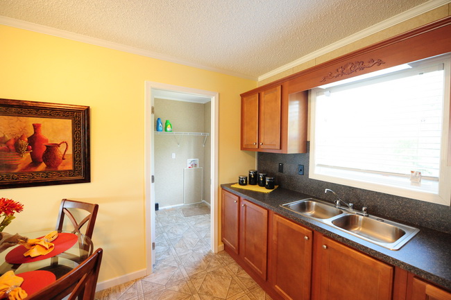 The Brentwood. A 3 bedroom, 2 bath home at 1068 sq ft with a gorgeous kitchen.